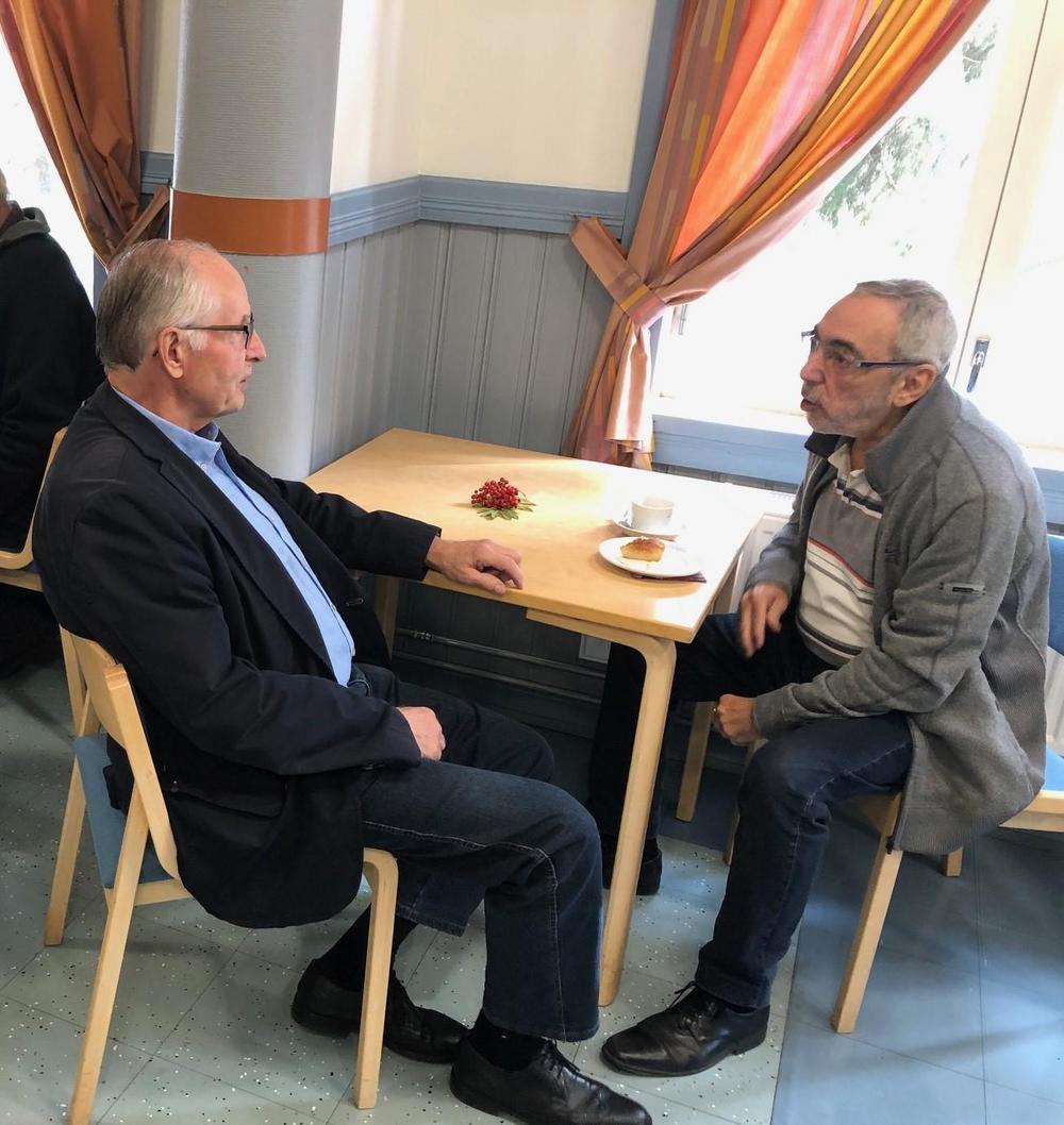 Ben ja puheenjohtaja Jarmo vaihtoivat kuulumisia ja muistelivat menneitä.