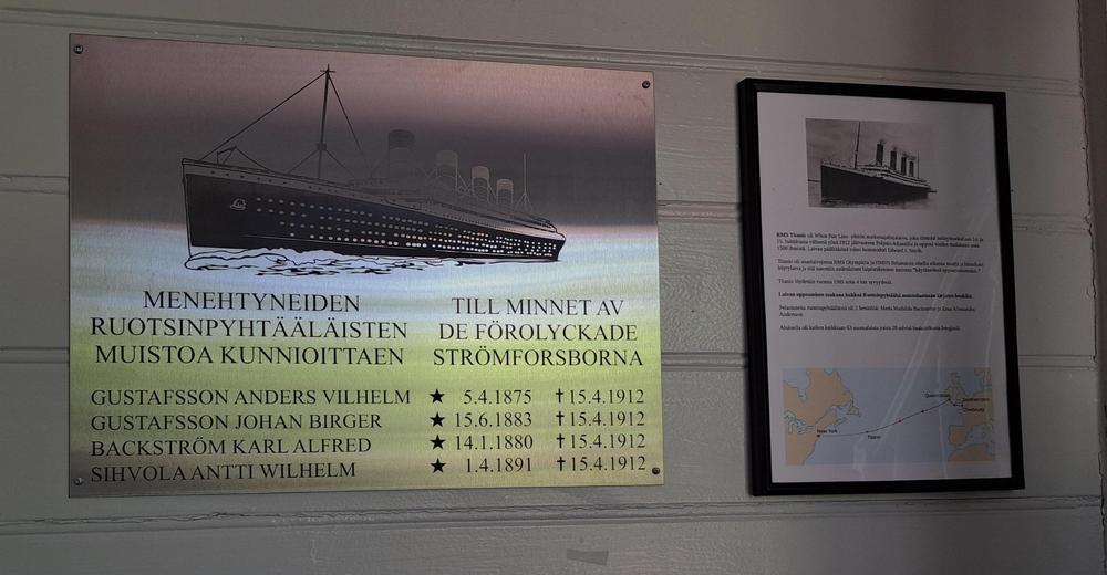 Pieni yksityiskohta kirkossa on muistolaatta, jossa on Titanicin haaksirikossa 15.4.1912 menehtyneiden kyläläisten nimet.