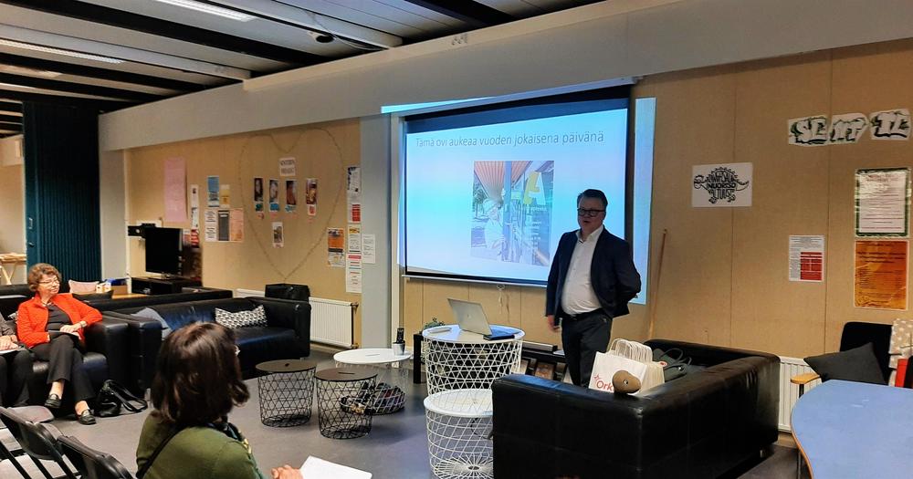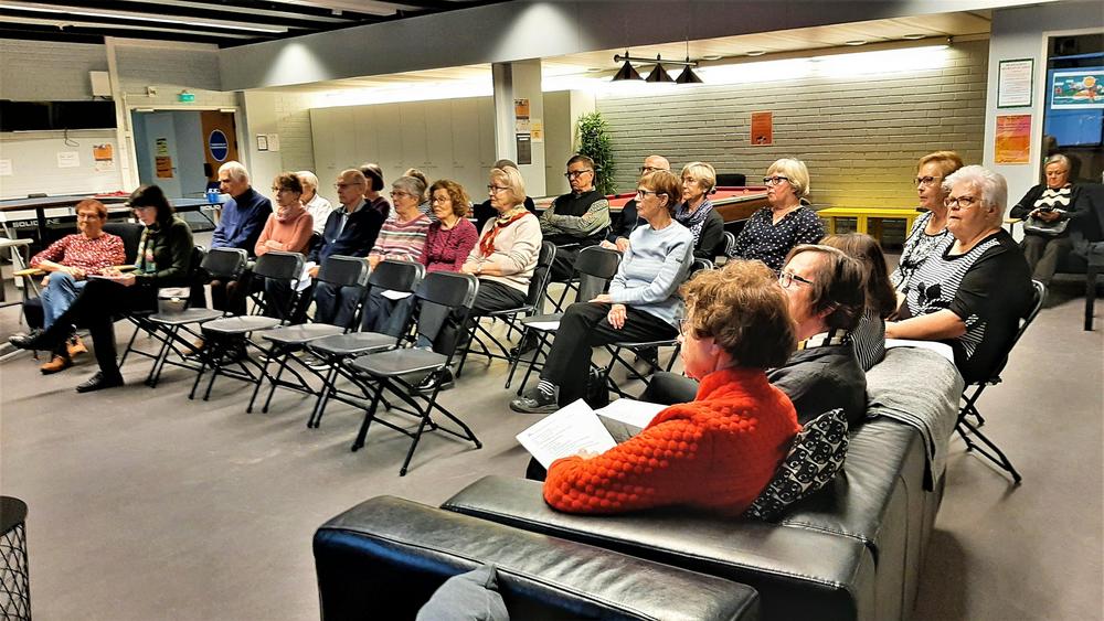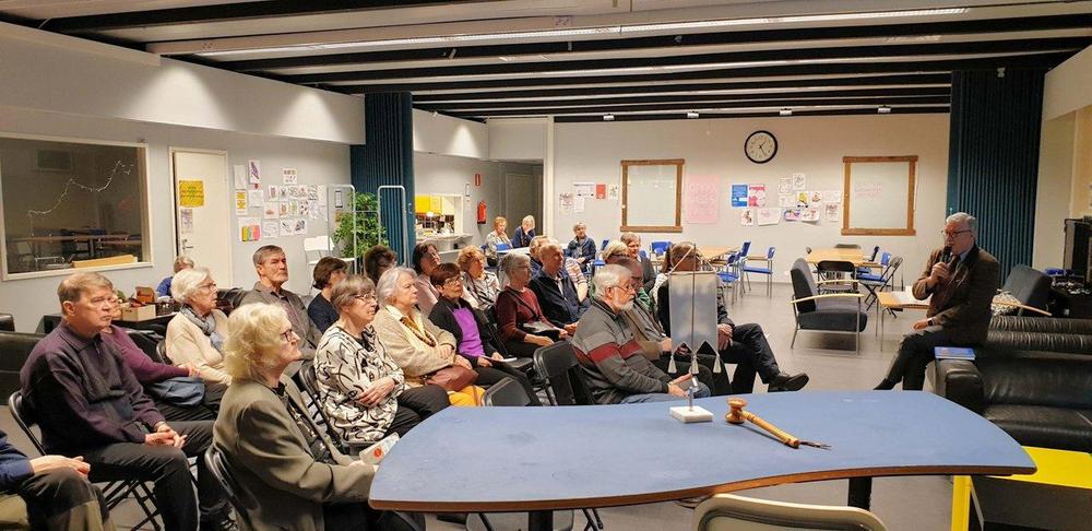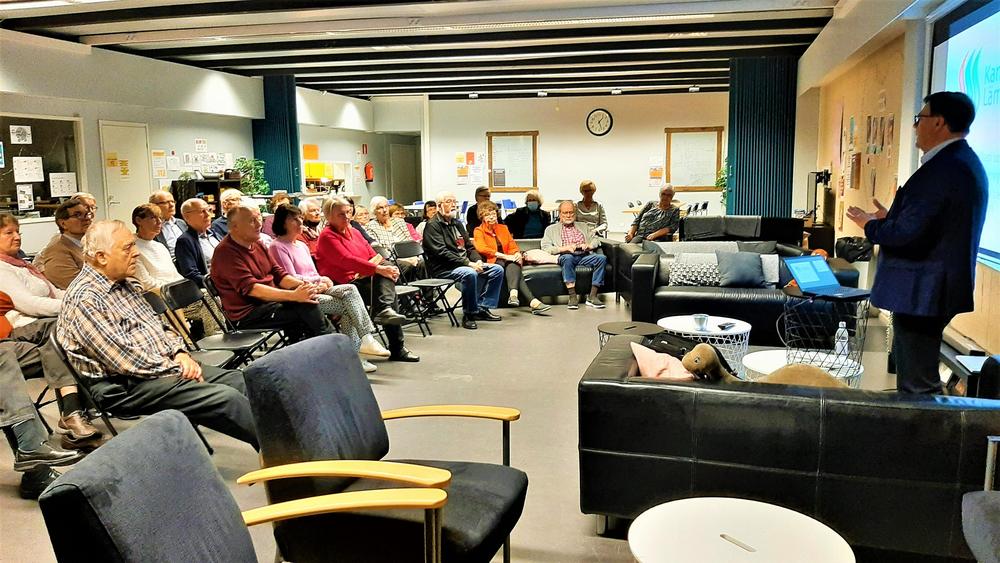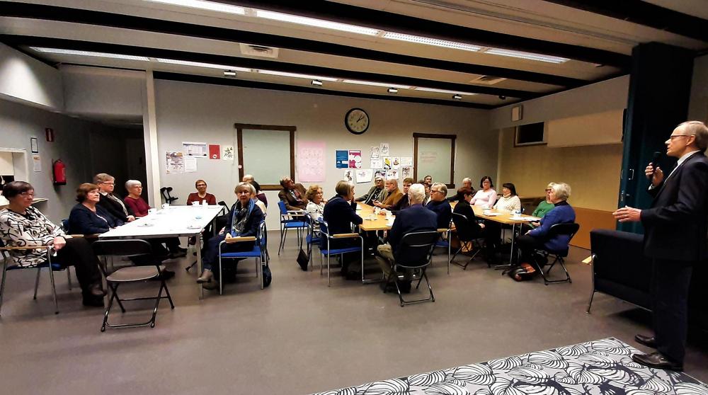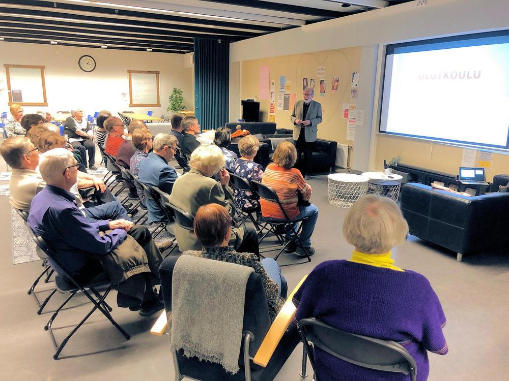 Senioreita kuuntelemassa Pekka Joutsiniemeä.